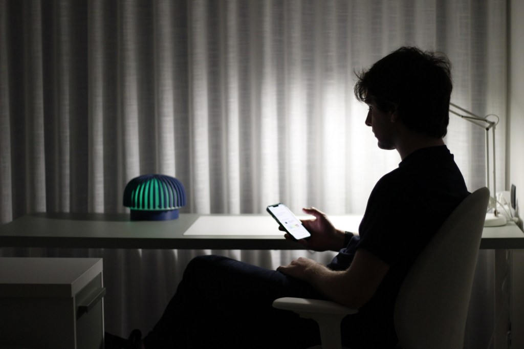Alvea es un producto de iluminación adaptativa basada en la sensorización ambiental. Traduce los datos del aire en estímulos sensoriales intuitivos, permitiendo monitorizar la calidad del aire interior sin interfaces complejas y fomentando hábitos saludables de forma cotidiana.